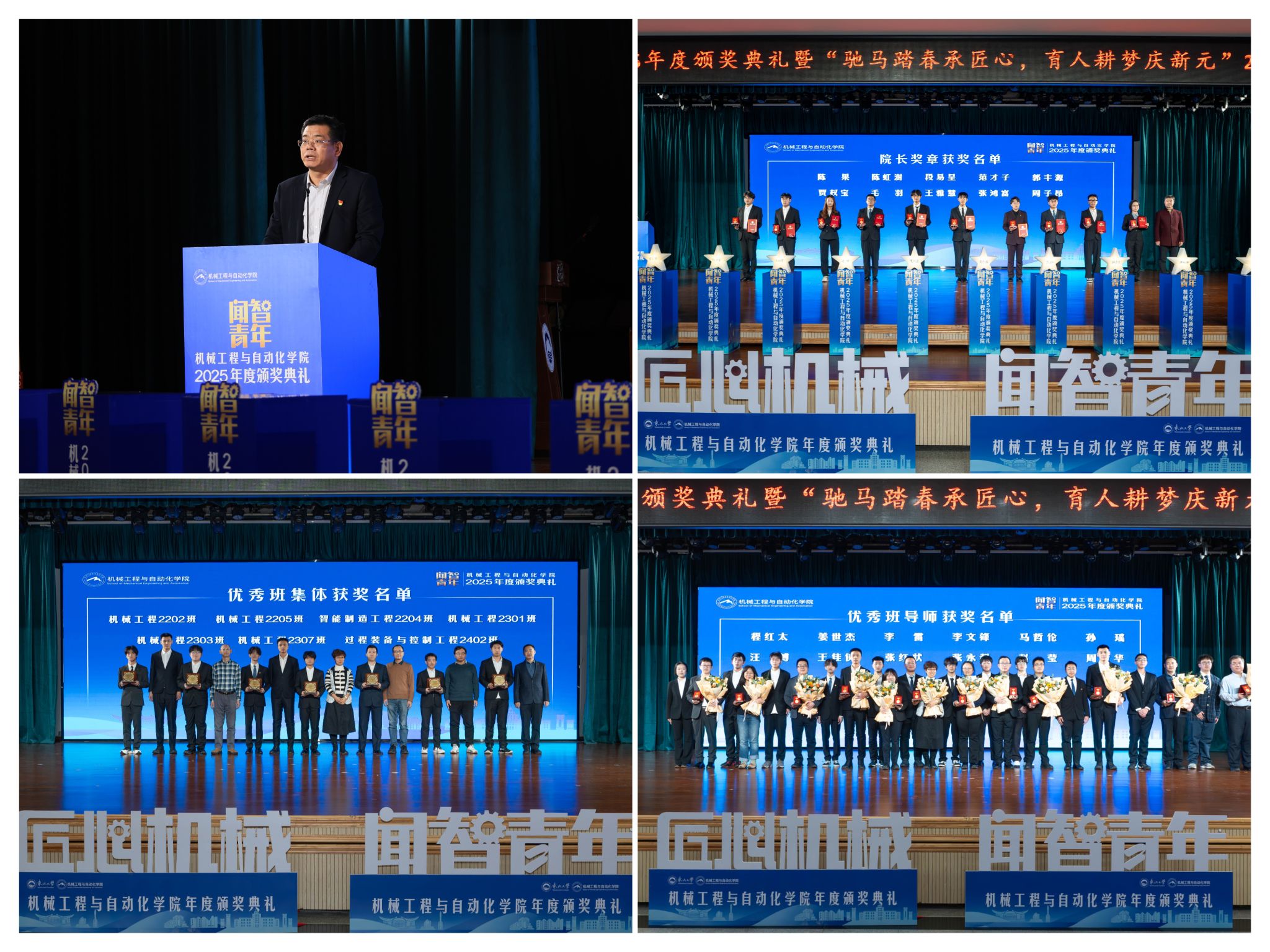 学院党委郝建山正在致辞中系统回首了一年来学院取得的主要成绩。学院积极办事国度计谋,投身深度金属矿智能开采纳配备全国沉点尝试室扶植,并正在环节科研范畴实现标记性冲破,获得国度严沉专项支撑。同时,学院成功引进增材取激光制制范畴领军团队,稳步推进学校新增学位点扶植,为久远成长奠基根本。正在人才培育方面,学院学子表示凸起,研究生学术丰盛,正在“挑和杯”“中国国际大学生立异大赛”等多项赛事中斩获国度级项,结业生就业率持续连结高位,展示了全面成长的优良素养。郝建山阐释了“闻智青年”品牌的育人内涵,勉励全体师生胸怀“国之大者”,将小我成长融入“制制强国”计谋,过硬本事,怯于立异创制,勤奋成为担任平易近族回复大任的时代新人。副院长罗忠表扬决定。颁环节分三轮顺次进行。起首颁布的是“院长章”,刘云飞为毛羽等10名正在专业进修、科技立异、随后颁布“优良班集体”项,学风及凝结力扶植中成效显著的班级颁。最初,仪式聚焦育人一线论理学生代表向获评“优良班导师”的教员们献上鲜花取荣誉证书,表达诚挚感谢感动。“院长章”获得者代表毛羽连系科研竞赛取意愿办事履历,讲述了“道阻且长,行则将至”的成长;“优良班集体”获代表豆煜轩分享了班级凝心聚力、共建优秀学风的活泼经验。正在“闻智匠心 共话青蓝”出格环节,从分歧视角展示了师生间思惟引领、讲授相长的温情互动,彰显了育人一线的深挚交谊取结实成效。据悉,“闻智青年”是机械工程取从动化学院出力打制的文化育人品牌。本次颁仪式既是年度的集中展现,也是典型树立、激励朝上进步的主要平台,旨正在指导全体学生以先辈为楷模,坚想、锻制立异能力,勤奋成长为具有家国情怀、全球视野取创制活力的杰出工程人才,为学校“双一流”扶植和高质量成长注入芳华力量。